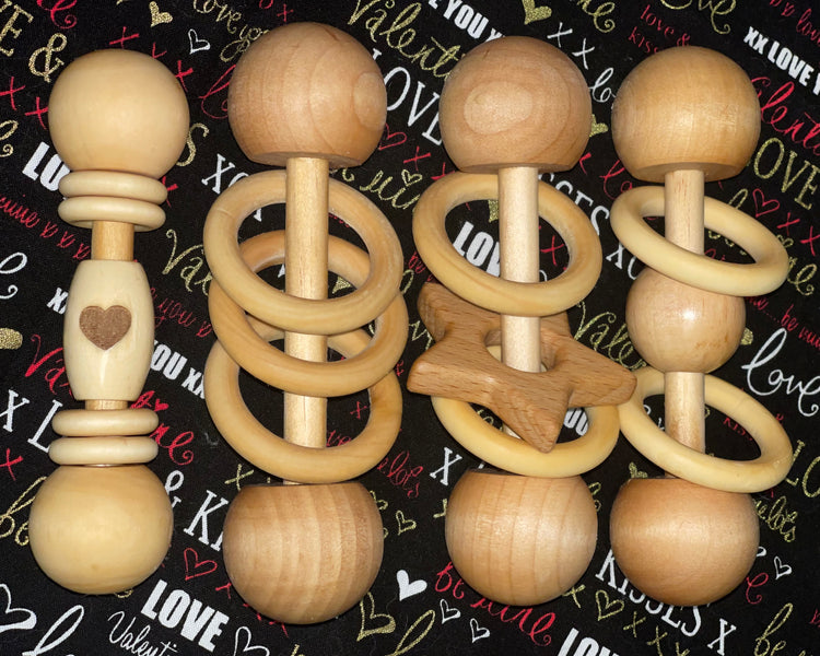 Our luxury baby rattles & teethers are coated with all-natural olive and coconut oil to provide a beautifully safe finish for your mini.