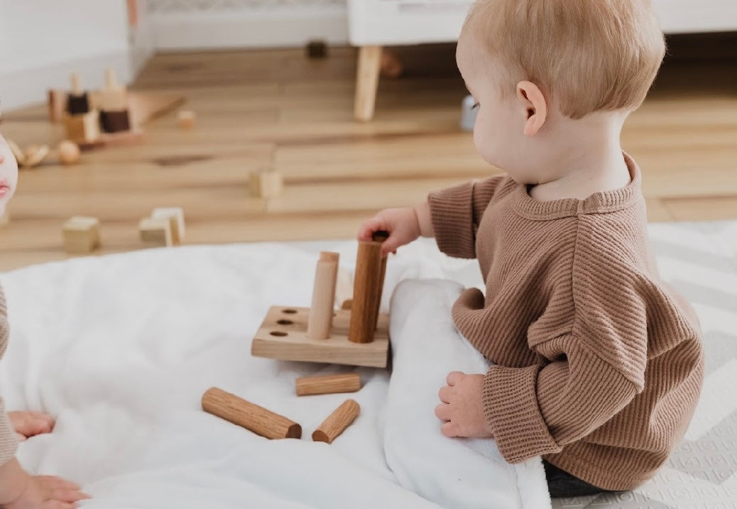 This handcrafted, hardwood Montessori 9-peg puzzle is perfect for your 1-3-year-old child! It promotes fine motor skills, problem solving, and independence with a classic design that's sure to captivate your little one. The wood is sealed with olive oil to provide a safe finish.