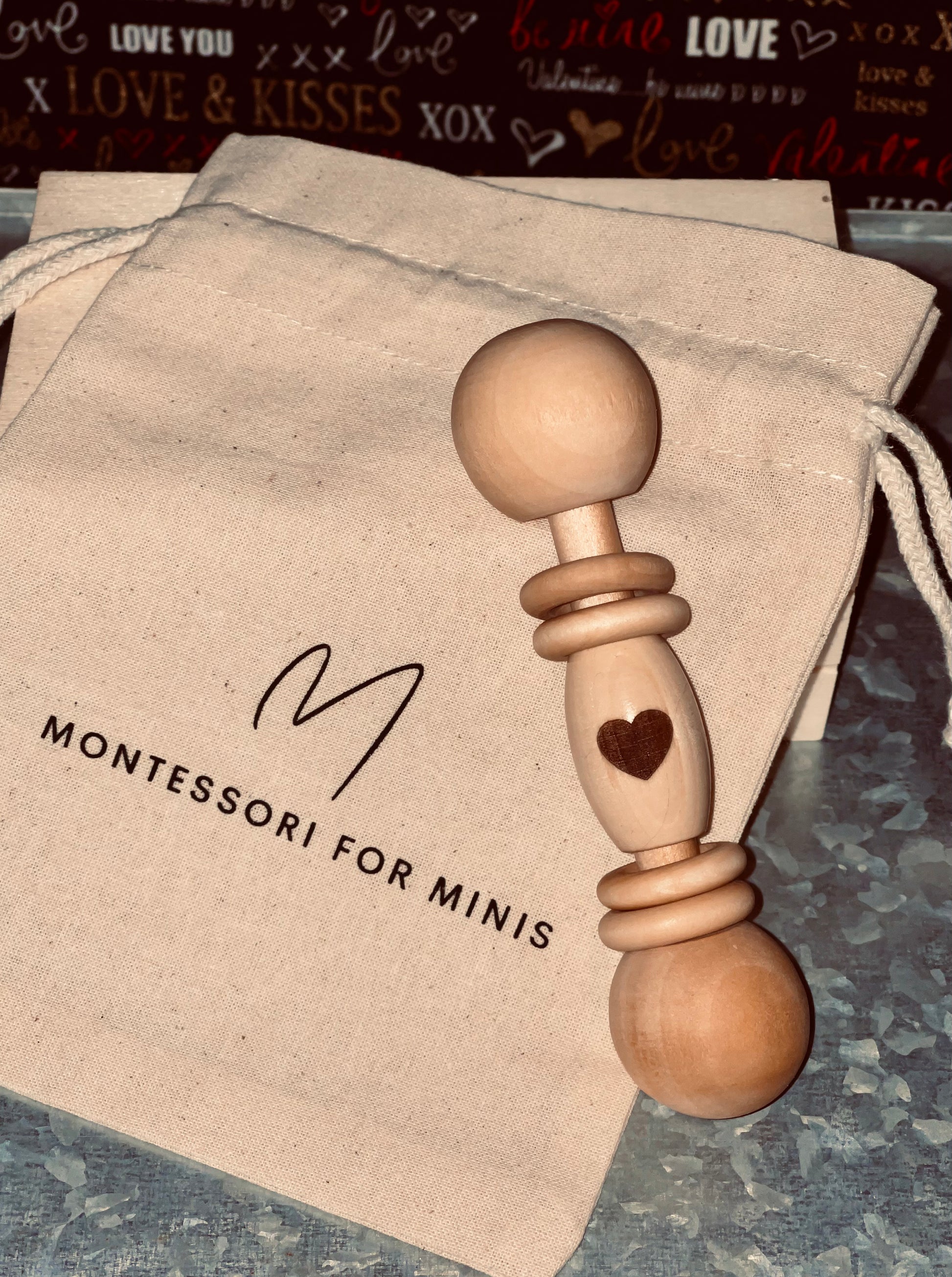 The Heart Bead Rattle: Ideal for preemies, this petite toy with a laser-engraved heart is perfect for little hands to shake-shake-shake. A delightful first-time toy to gift your little joy with love.