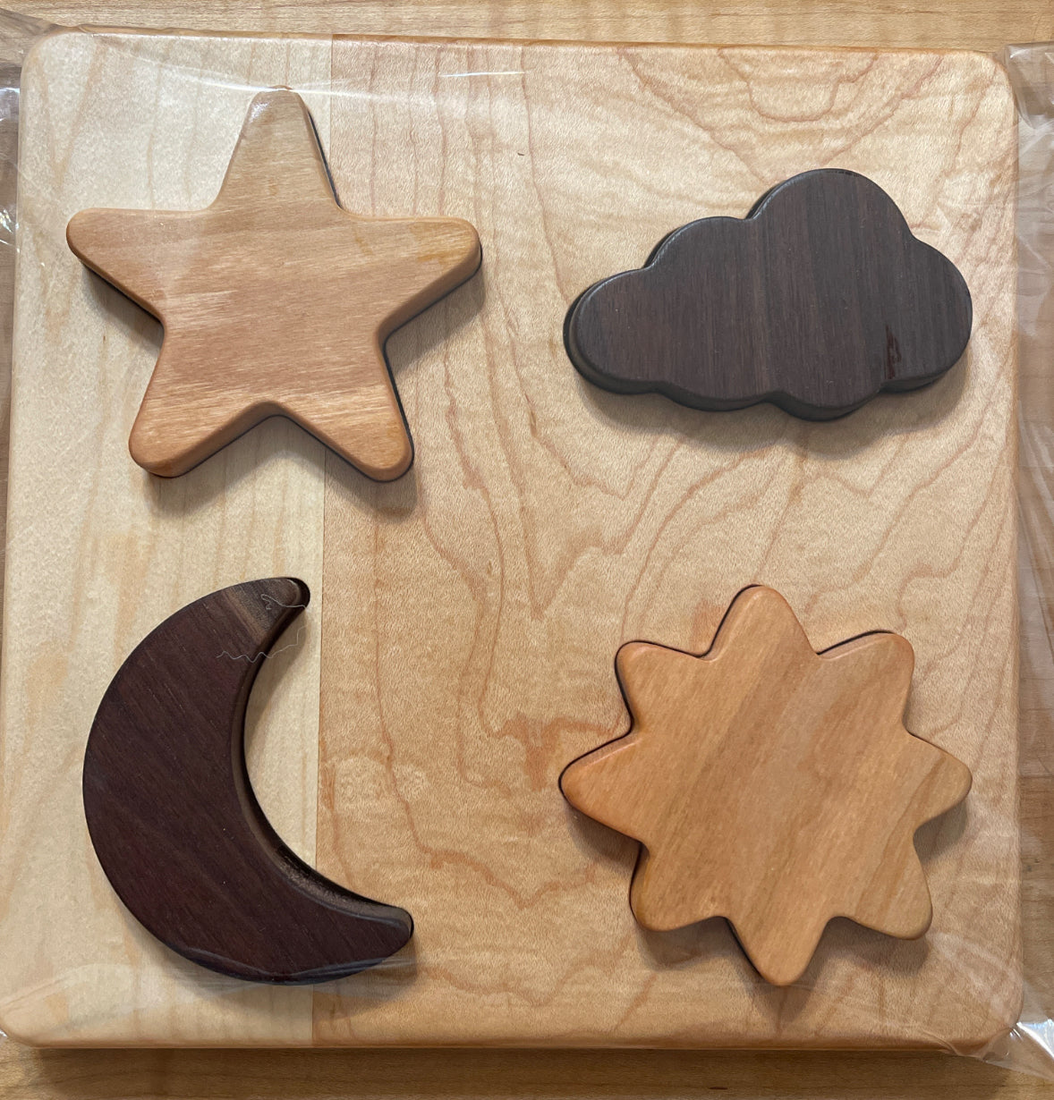 Introducing the newest heirloom puzzle that can grow with your child. From the heavenly shapes puzzle to a literacy or science learning tool, this will last their whole childhood and beyond. This handmade wooden shape puzzle features natural wood carved and sanded to captivate your child's mind. Each piece is uniquely crafted & designed to provide stimulating sensory play, helping to develop fine motor skills and creativity. With this educational toy, your child can explore the world of puzzles through the wonders of nature.